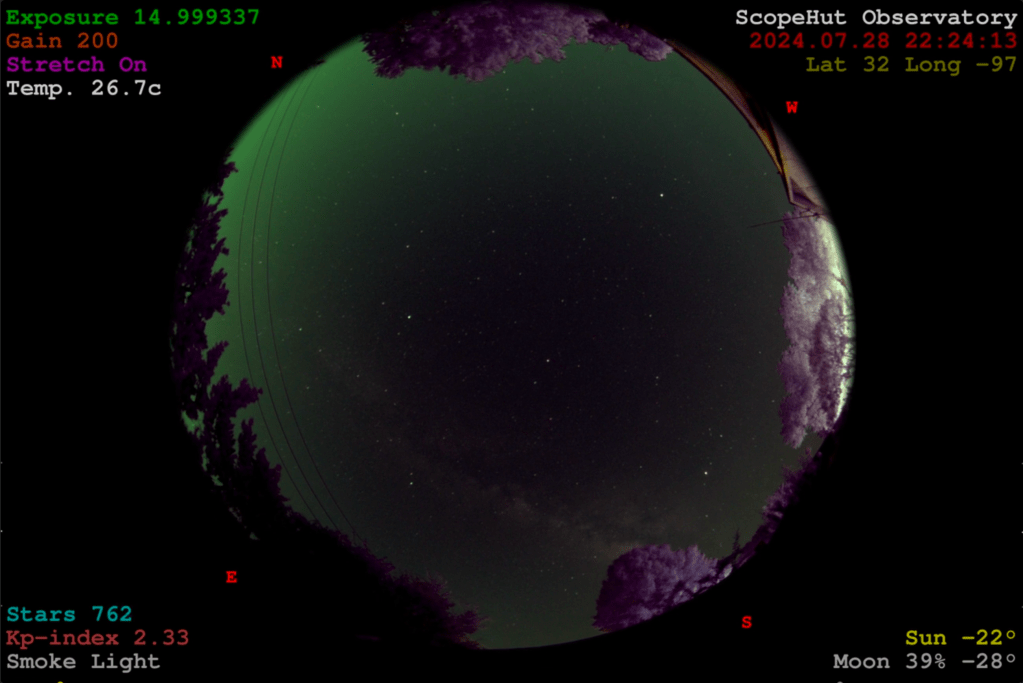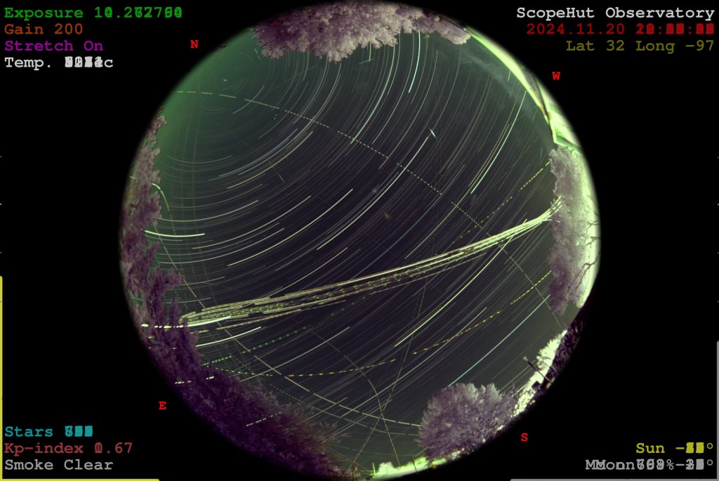After a trip to the hardware store, I secured some PVC pieces. I used a 4″ coupler and a 4″ endcap to make the enclosure. I also had an old security camera dome lying around. With these pieces in hand, I set about building the camera enclosure. The image above shows version 1.0. It was crude but worked well. Next, I installed Indi-Allsky on an old PI4, which lives in the Hut out of the weather. With the Pi, software, and camera all set up, it was time to mount it and see what I had.