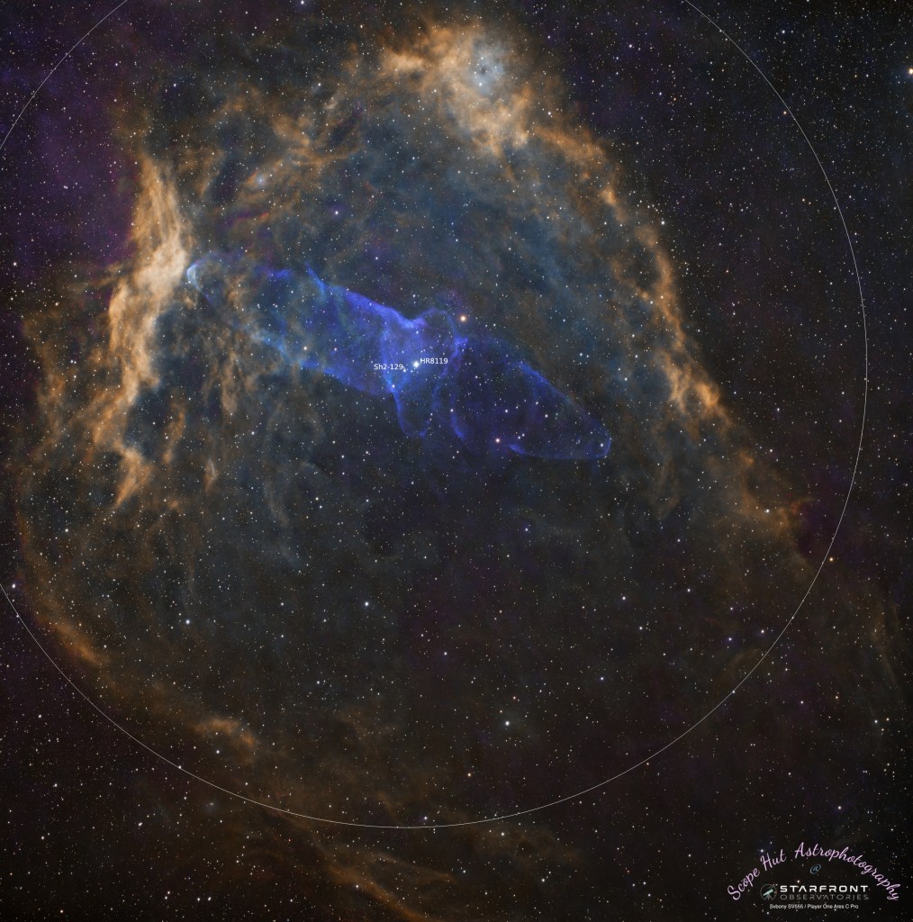 • Inside Sh2-129 lies the remarkable and extremely faint Squid Nebula (Ou4), discovered in 2011 by amateur astronomer Nicolas Outters.
